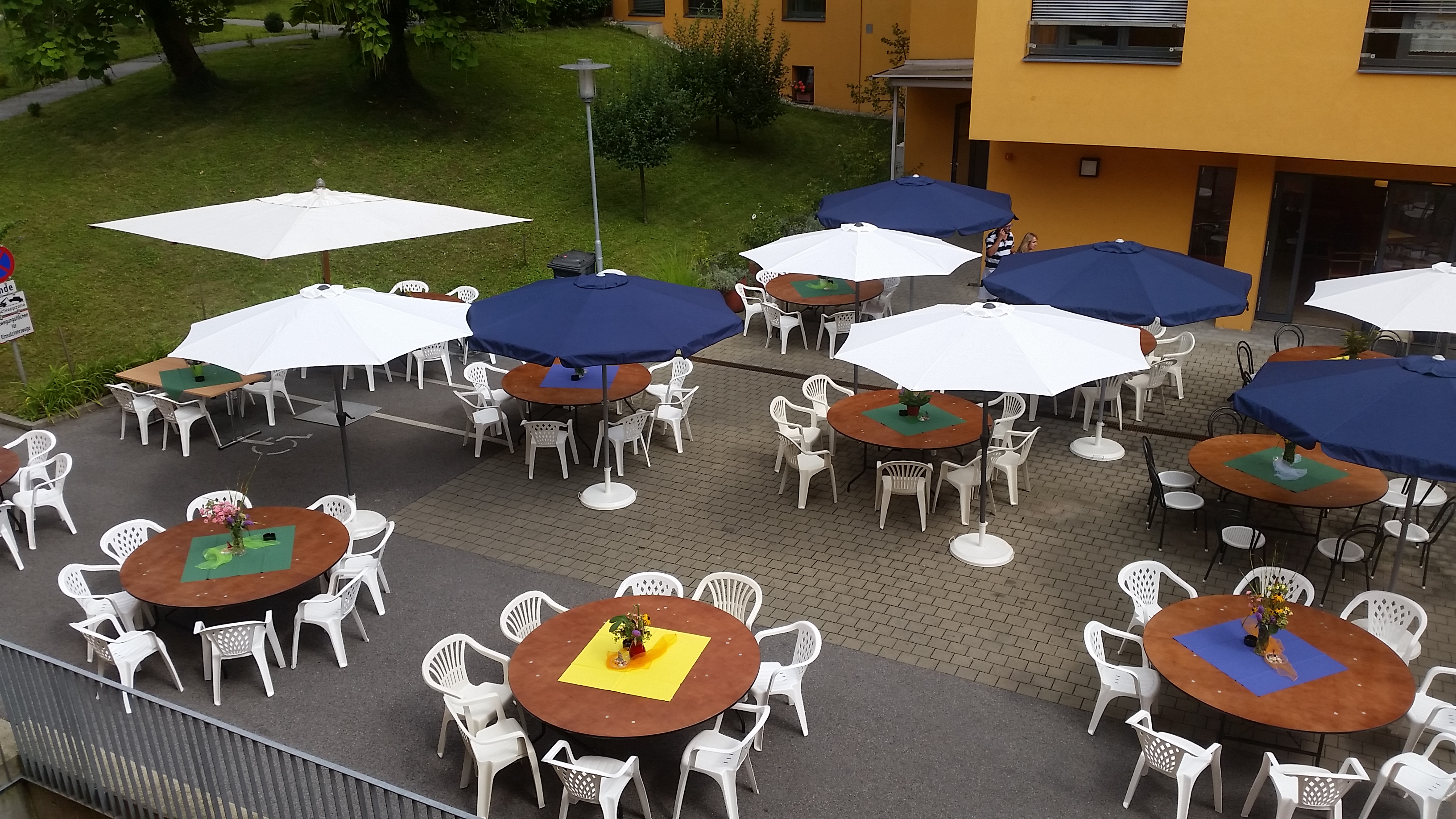 Für freudiges Feiern an heißen Sonnentagen bieten wir Ihnen Sonnenschirme mit etwa drei Metern Durchmesser und 45 Kilogramm schweren Schirmständern. Die Nirosta Schankpulte, die wir mit oder ohne Kühlladen liefern, Getränkeschränke sowie verschiedene Gas-Terrassenstrahler, Elektroheizer und Öl-Heizkanonen machen aus Ihrer Veranstaltung etwas ganz Besonderes.